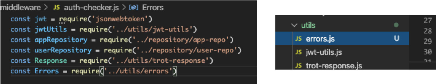 2021-01-10T01:25:18.946380+00:00 app[web.1]: mytrot development mode 2021-01-10T01:25:19.123710+00:00 app[web.1]: internal/modules/cjs/loader.js:883 2021-01-10T01:25:19.123711+00:00 app[web.1]: throw err; 2021-01-10T01:25:19.123712+00:00 app[web.1]: ^ 2021-01-10T01:25:19.123712+00:00 app[web.1]: 2021-01-10T01:25:19.123713+00:00 app[web.1]: Error: Cannot find module '../utils/errors' 2021-01-10T01:25:19.123713+00:00 app[web.1]: Require stack: 2021-01-10T01:25:19.123713+00:00 app[web.1]: - /app/lib/middleware/auth-checker.js 2021-01-10T01:25:19.123714+00:00 app[web.1]: - /app/lib/routers/user.js 2021-01-10T01:25:19.123714+00:00 app[web.1]: - /app/index.js 2021-01-10T01:25:19.123714+00:00 app[web.1]: at Function.Modu